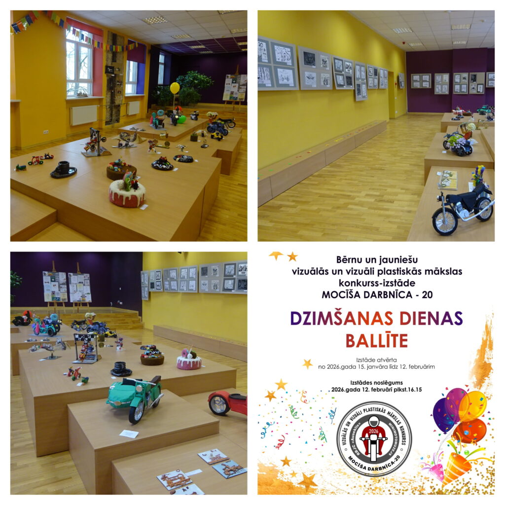 🏍️ Bērnu un jauniešu vizuālās un vizuāli plastiskās mākslas konkurss izstāde “MOCĪŠA DARBNĪCA 20” tuvojas noslēgumam!