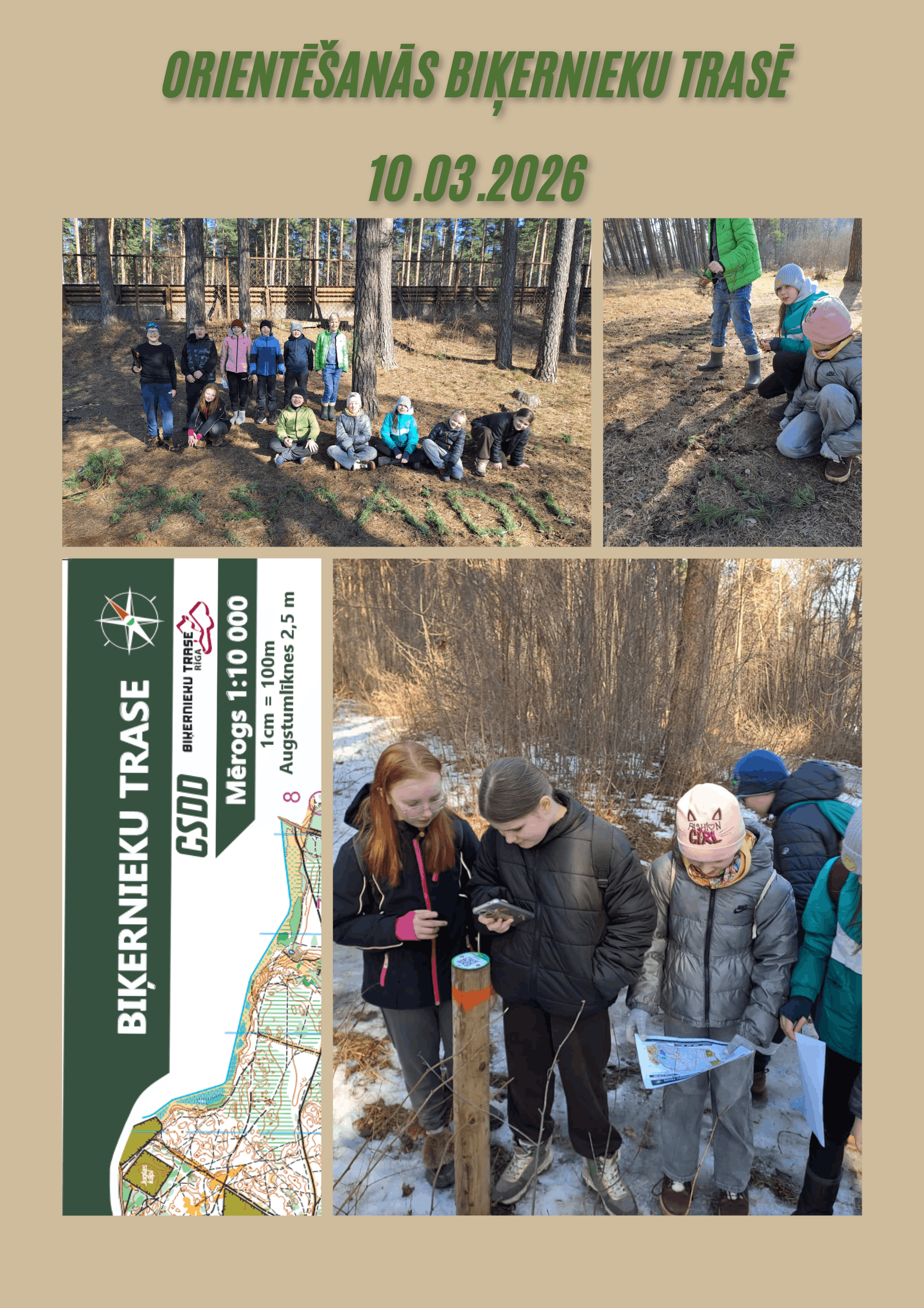 - 10.martā jaunsargi devās uz Biķernieku trasi, kur apguva orientēšanos, pirmo reizi izmantojot tieši orientēšanās kartes. Tika mācīti kartes simboli, virzienu noteikšana un pārvietošanās pēc kartes.