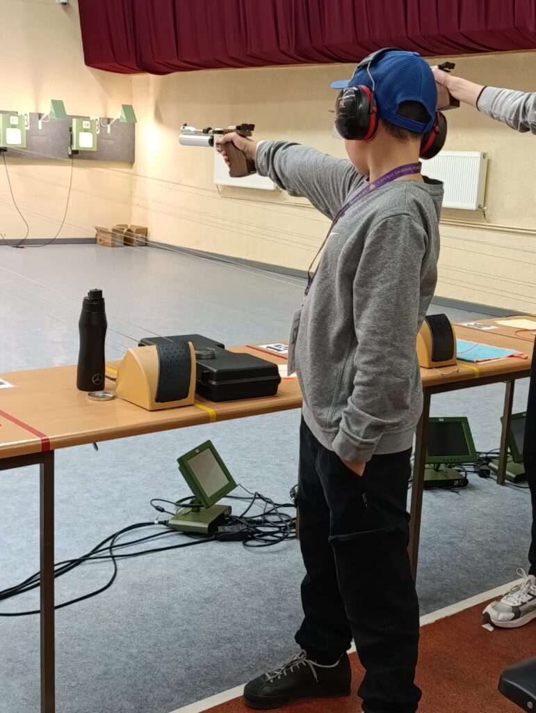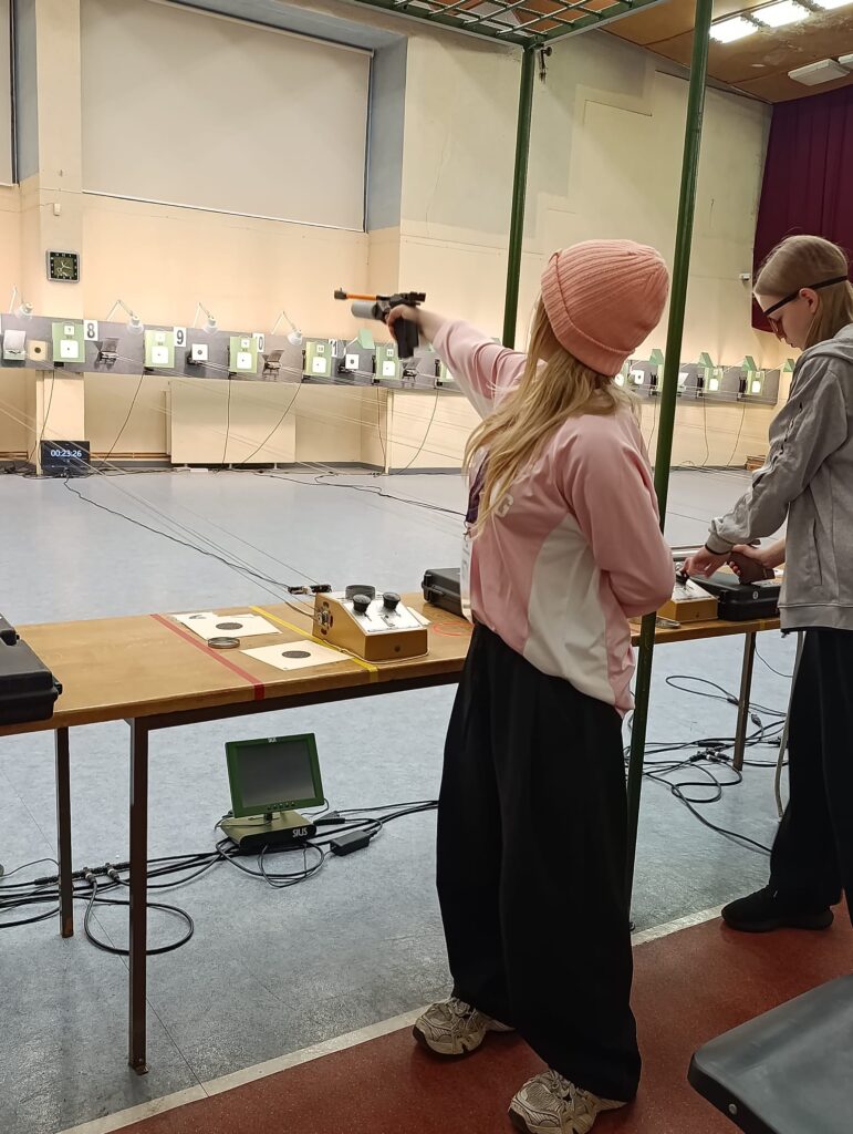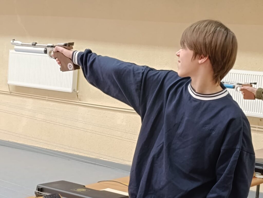 Dominiks Bulindžs izrādījās labākais no visiem, iegūstot pirmo vietu šaušanā ar pneimatisko pistoli un kļūstot par Latvijas čempionu, uzstādot personīgo rekordu 268 p. un sasniedzot 2. sporta klases normatīvu. Timuram Baranovskim arī ir labs rezultāts – 245 punkti, 8. vieta, 3. sporta klase un personīgais rekords. Marks Kalvišs – 215 punkti, 26.vieta. Diviem audzēkņiem  šīs bija pirmās sacensības, un viņi guva labu pieredzi: Arīna Izinkeviča – 228 punkti, 11. vieta, Silvestrs Kovaļovs – 215 punkti un 25.vieta. Viņš arī izšāva no mazkalibra pistoles (159 punkti), ko viņam deva tēvs, kuram piederēja personīgais ierocis.