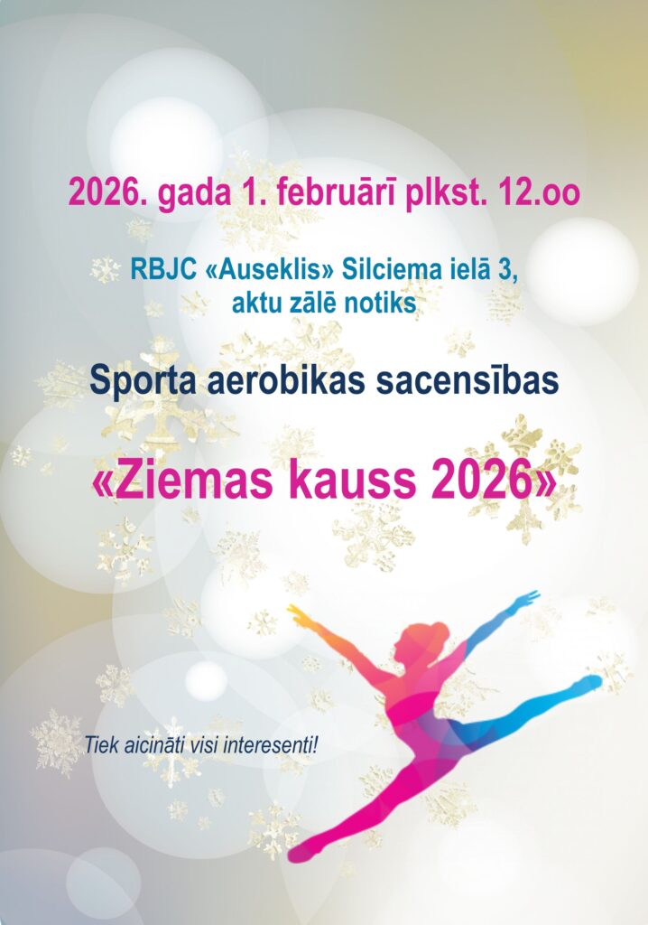 Rīgas bērnu un jauniešu centrā “Auseklis” norisināsies sporta aerobikas sacensības “Ziemas kauss 2026” 2026. gada 1. februārī no plkst. 12:00 līdz 17:00.